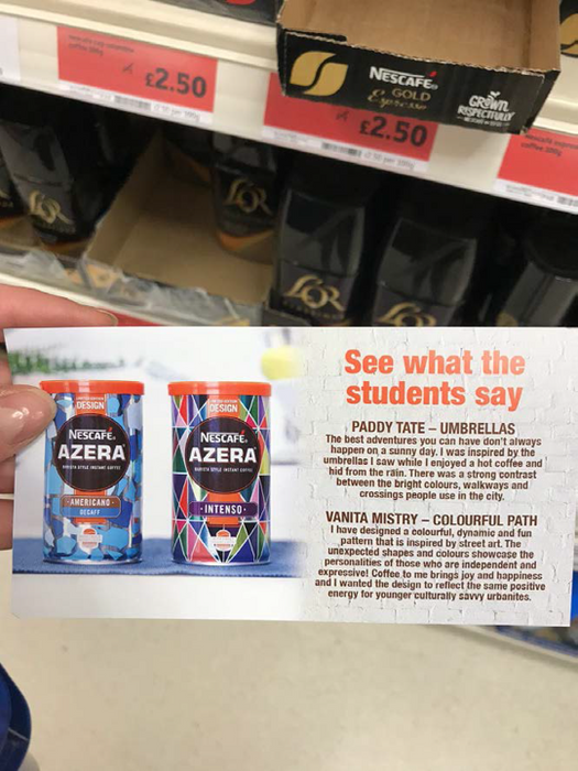 STRATEGY: Coffee for young people should be designed by young people. We teamed up with students at UCA to use NESCAFÉ AZERA as their canvas for culturally relevant, stand out tins with a message.